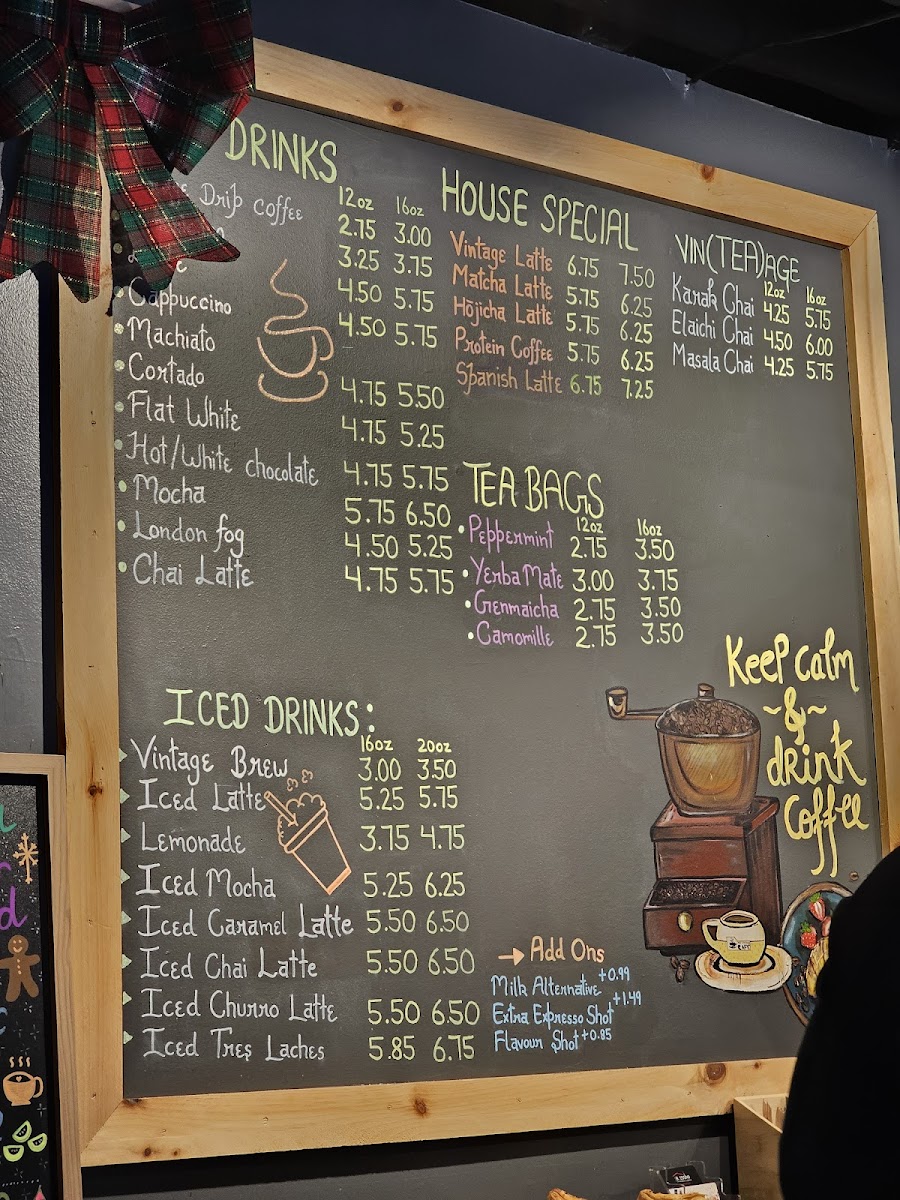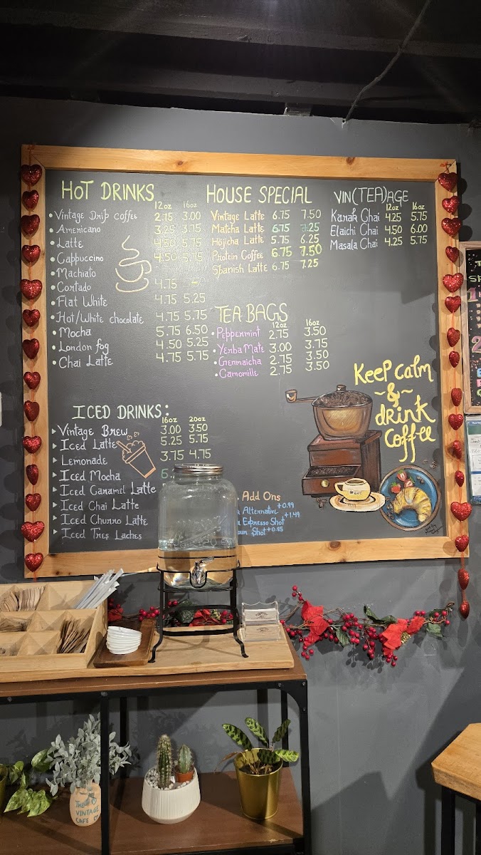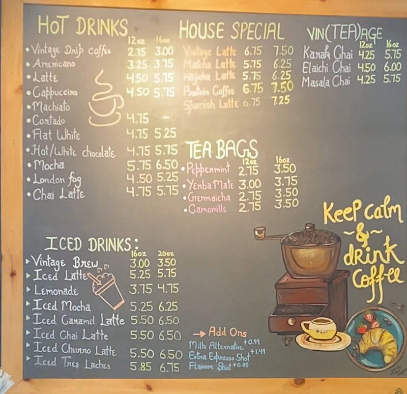 Welcome to The Vintage Cafe, where every visit is a journey through flavors that will tantalize your taste buds! Nestled in the heart of Caledon Village at 16560 Hurontario St, our menu is a delightful fusion of warmth and creativity, designed for coffee enthusiasts and food lovers alike. Start your day with a rich Spanish Latte or savor the flaky goodness of our Pistachio Croissant. Looking for something cozy? Our Chai Tea Latte and crispy Veg Sandwich are simply irresistible! Don’t miss out on our signature Potato Patty – a crowd favorite! Whether you’re grabbing a quick bite or savoring a leisurely meal, let our specialties elevate your coffee experience. Join us at The Vintage Cafe and enjoy every sip and bite!